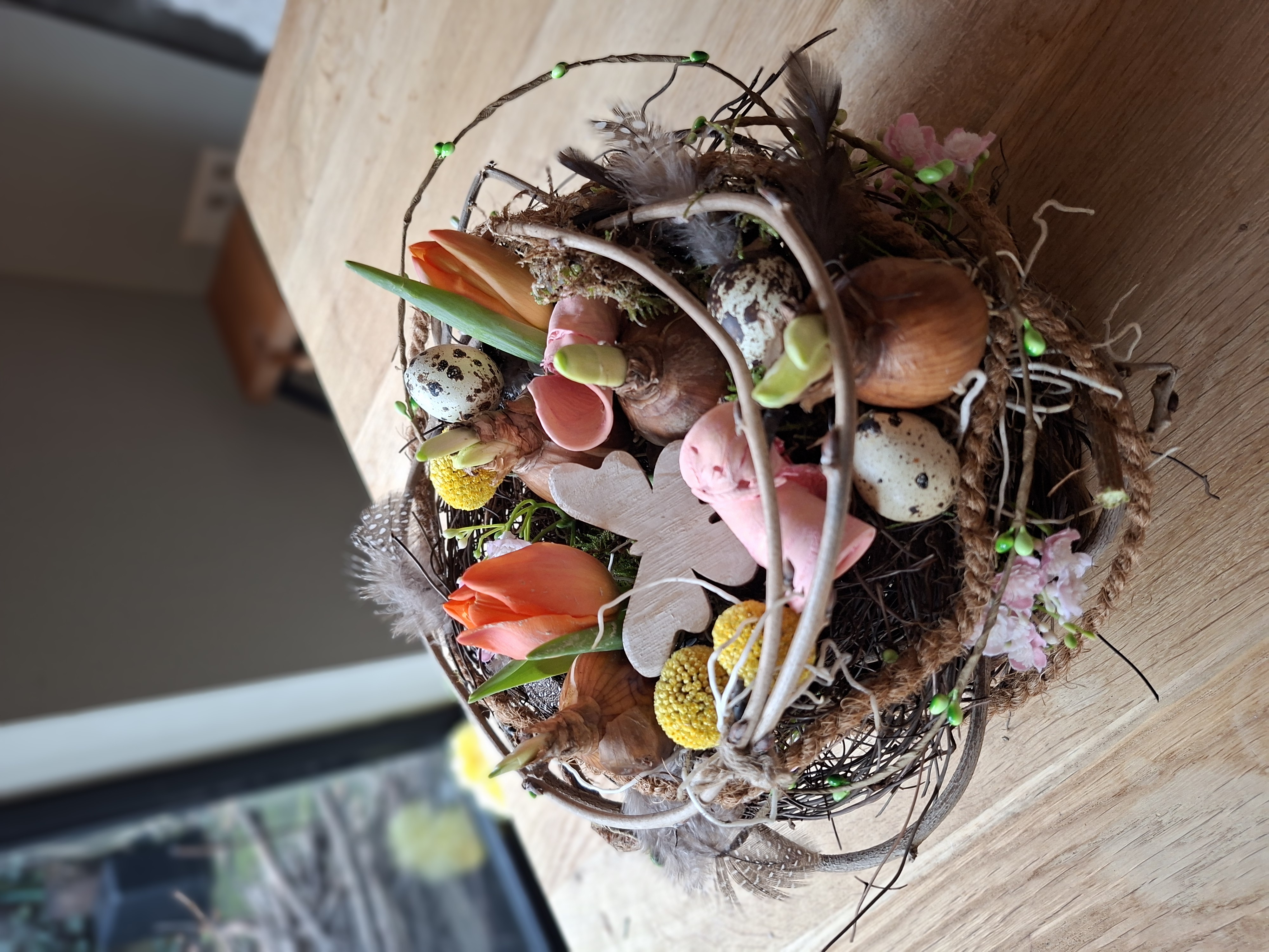 Tijdens deze workshop bind je een mooi nest (doorsnede 30cm) van diverse grillige takken. Daarin verwerk je dan bloembolletjes, eitjes, veertjes, vlinder en diverse voorjaarsmaterialen en de verse snijbloemen steken we dan in buisjes met water en er ontstaat vrolijk lang houdbaar voorjaarsstuk.