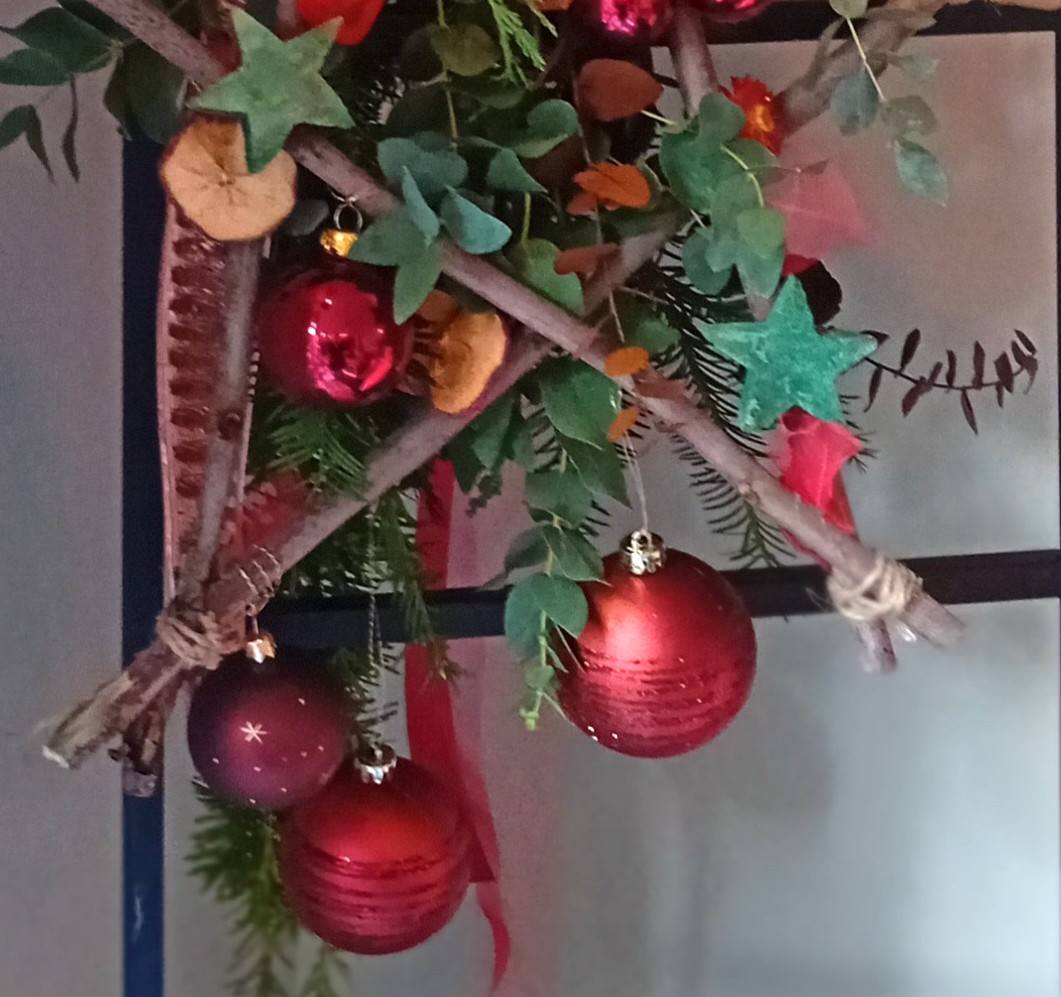 We gaan een zelf een mooie ster maken en deze versieren met div. soorten groen, touw, kerstballen en andere kerstmaterialen. In een kleur naar eigen keuze en die bij je past. De workshop is inclusief leuke zwarte trap. h.1.60 cm en br.45cm.